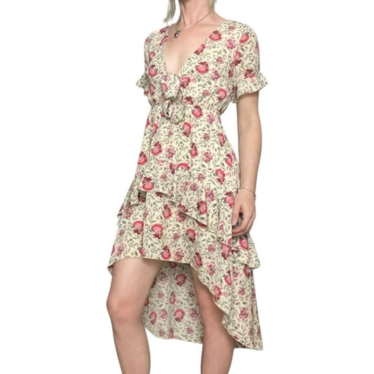 Nasty Gal Cream & Red Floral Hi-Low Layered Cutout Tie Front Midi Dress