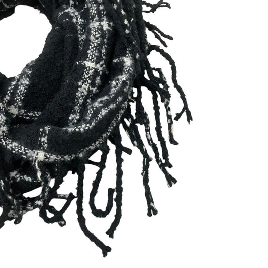 Black & White Plaid Fringe Knit Infinity Scarf