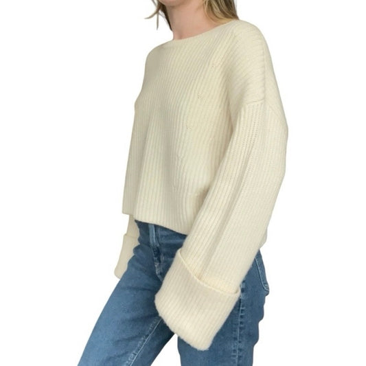 Banana Republic Cream Knit Cuffed Sleeve Crewneck Sweater