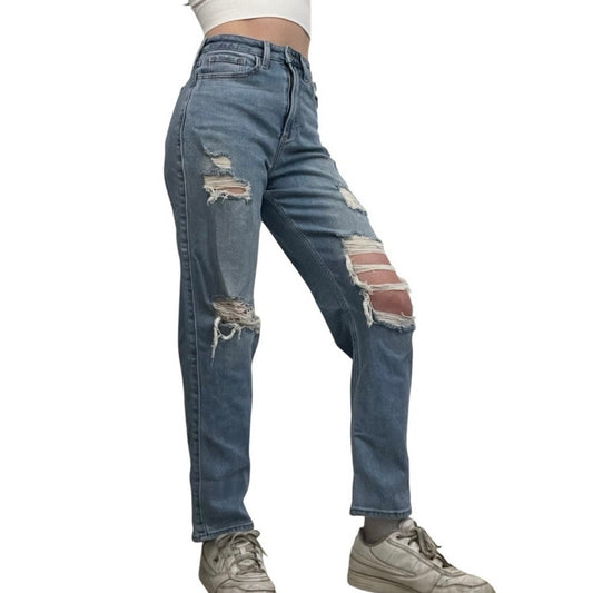Hollister Curvy Ultra High Rise Vintage Straight Leg Distressed Stretch Jeans