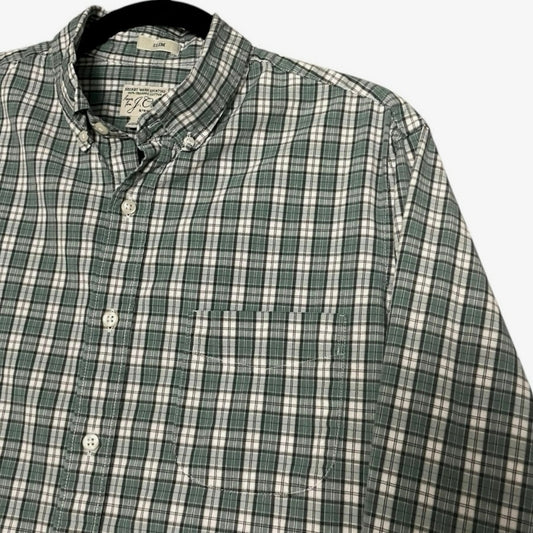 Sewn for J. Crew Mens Green Plaid Secret Wash Stretch Slim Fit Button Down Shirt