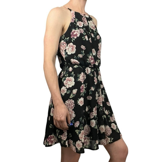Blue Rain Black & Pink Floral A-Line Mini Dress