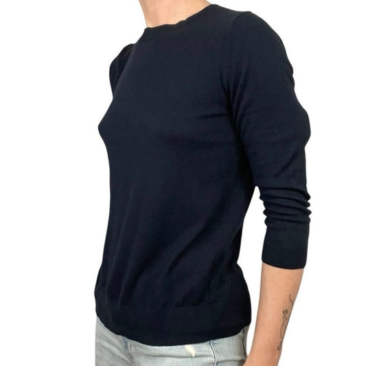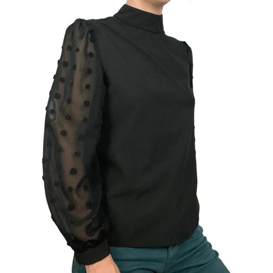 Black Puff Sheer Textured Sleeve High Neck Blouse