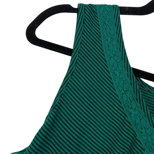 PrAna Green and Black Striped Soft Boho Lace Trim Cinched Tank Top