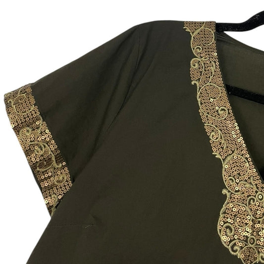 Dana Buchman Green & Gold Sequin Short Sleeve V-Neck Blouse