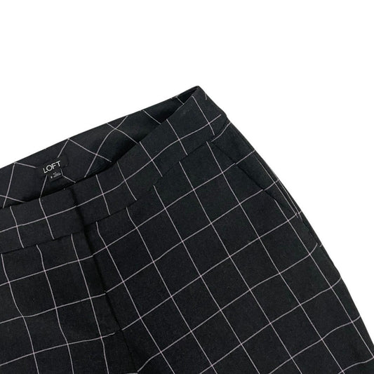 LOFT Julie Dark Grey & Pink Grid Check Plaid Trousers