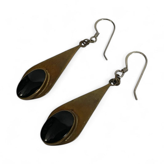 Vintage Turquoise & Black Funky Rectangle Statement Necklace Pendant