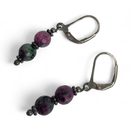 Vintage Orange Stone Pendant Red Beaded Earrings