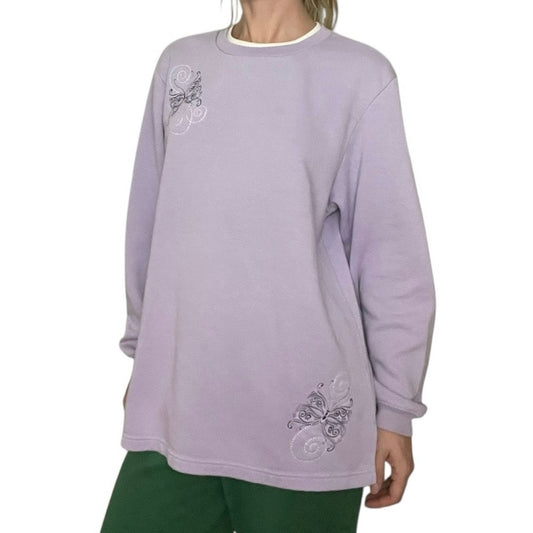 Blair Vintage Purple Butterfly Embroidered White Double Collar Sweatshirt