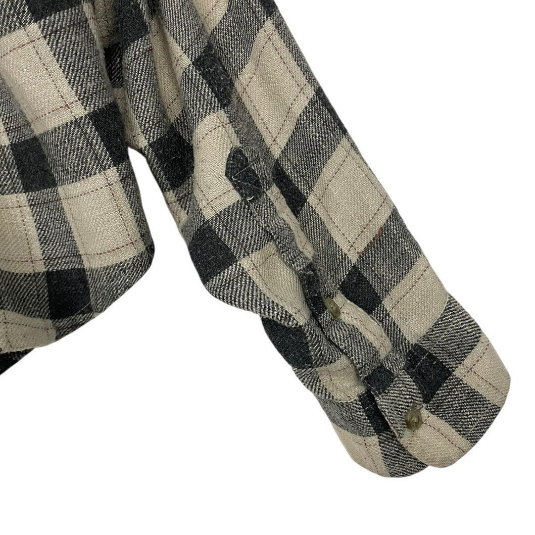 American Eagle Beige & Grey Plaid Long Sleeve Button Down Shirt