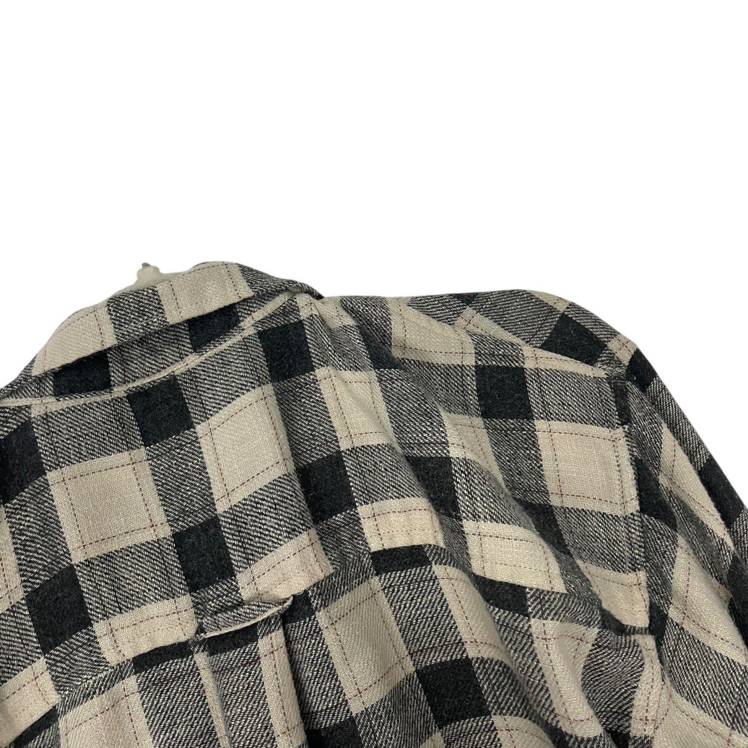 Soft beige and grey plaid long sleeve button down collared shirt - slightly cropped