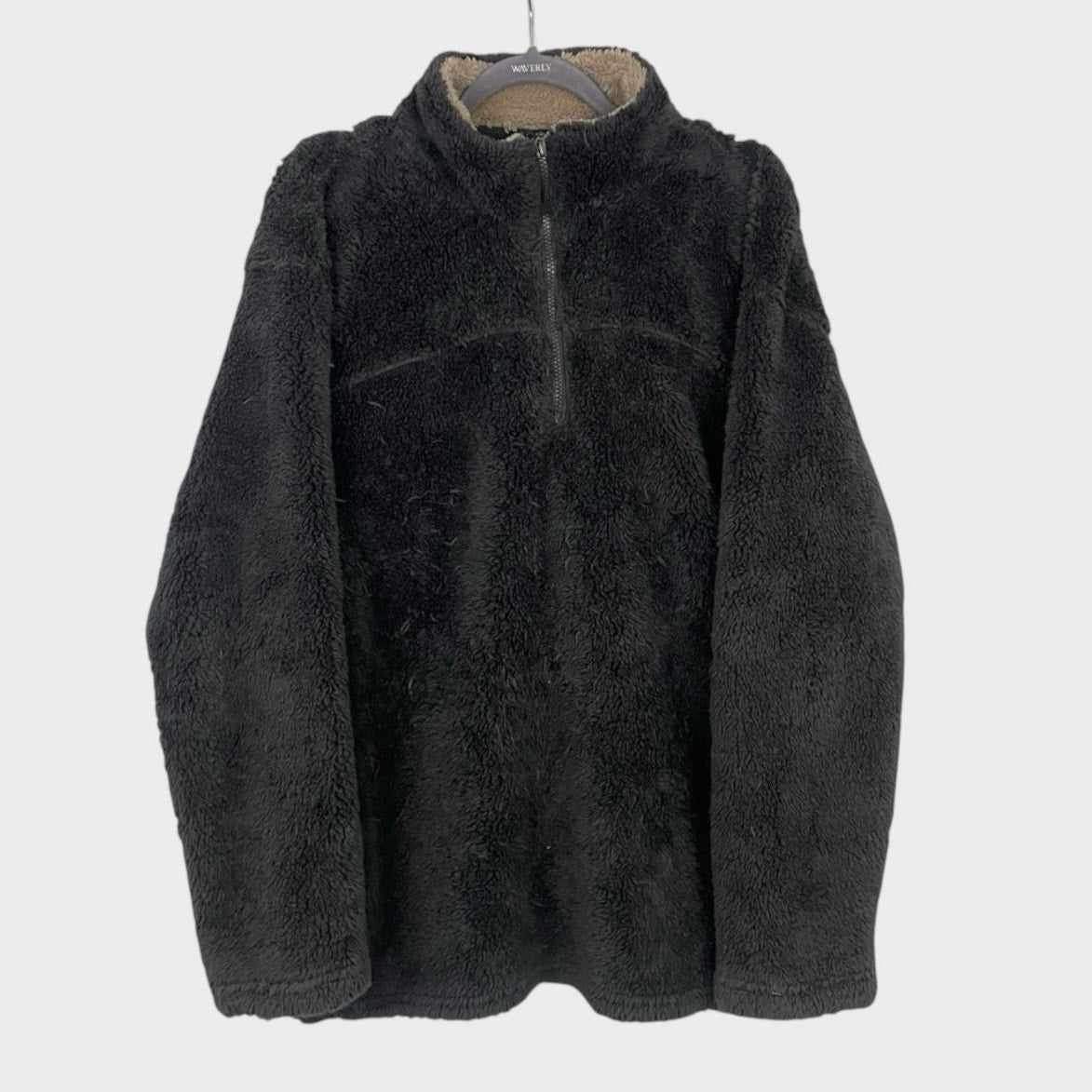 Super soft vintage fluffy dark grey faux fur quarter zip