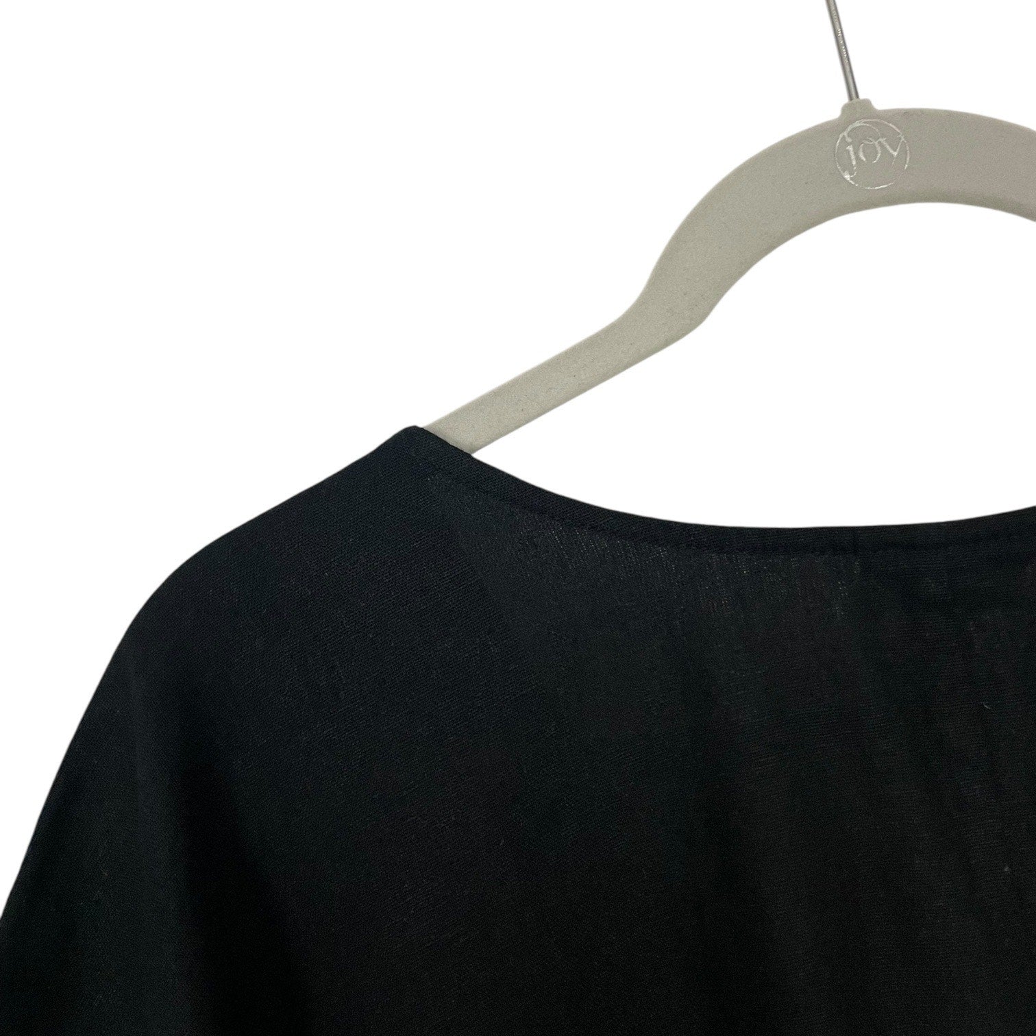 Black short sleeve v-neck blouse that ties at the hem