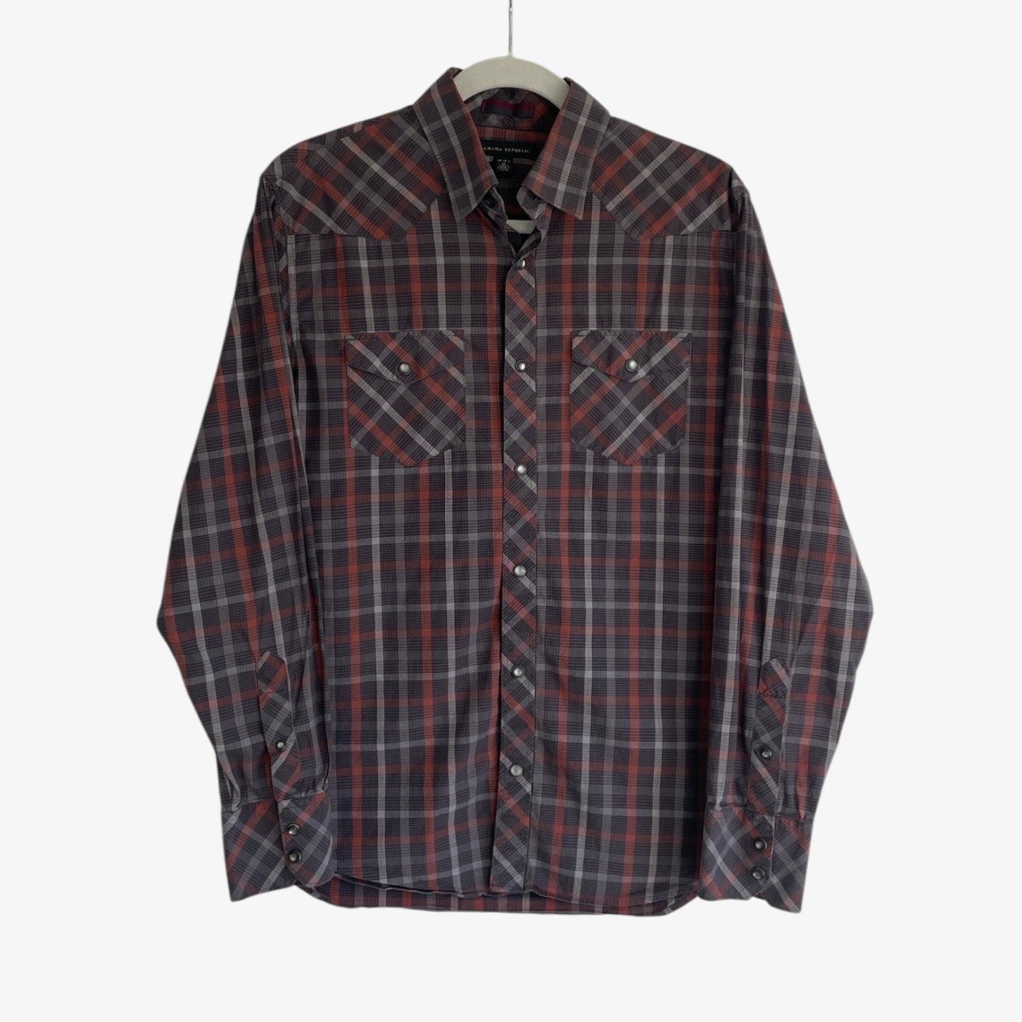 Banana Republic Mens Red & Brown Plaid Long Sleeve Button Down Shirt