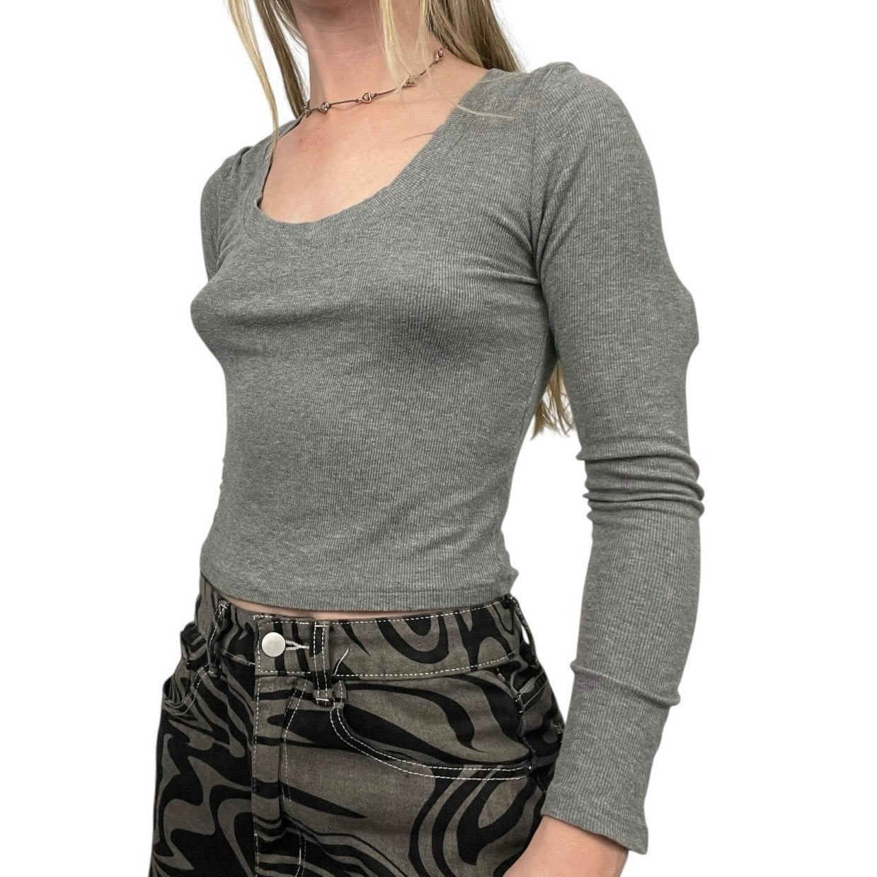 The perfect soft grey long sleeve ribbed slightly cropped top