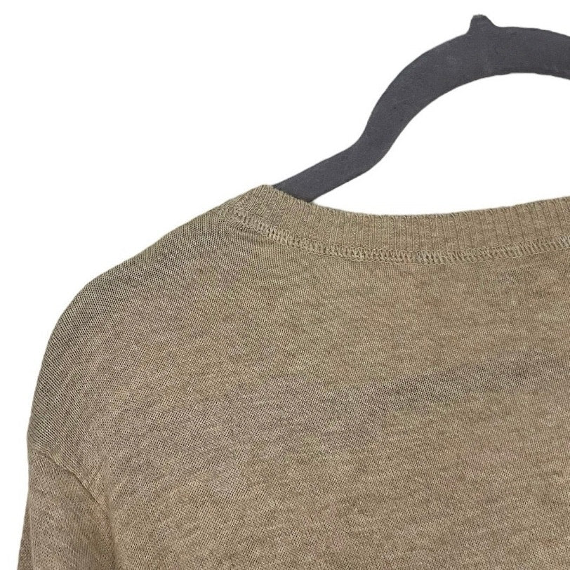 Amazing soft beige and sheer white layered crewneck blouse with slightly cropped sleeves