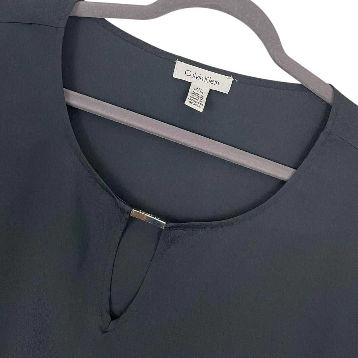 Calvin Klein Sheer Grey Short Cuffed Sleeve Cutout Blouse