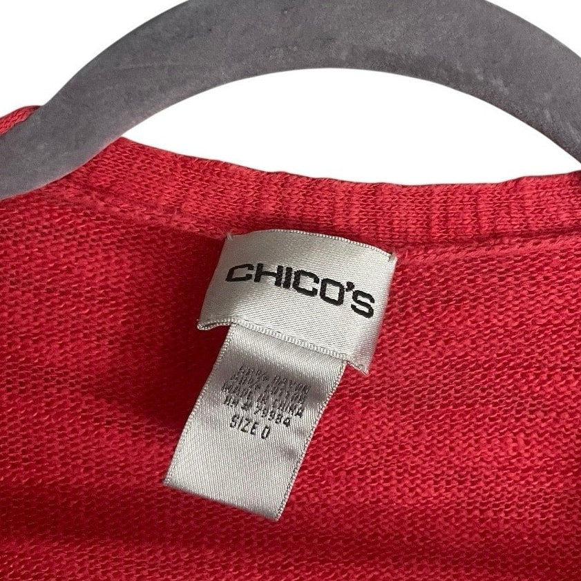Chico's Coral Cropped Sleeve Cardigan Sweater