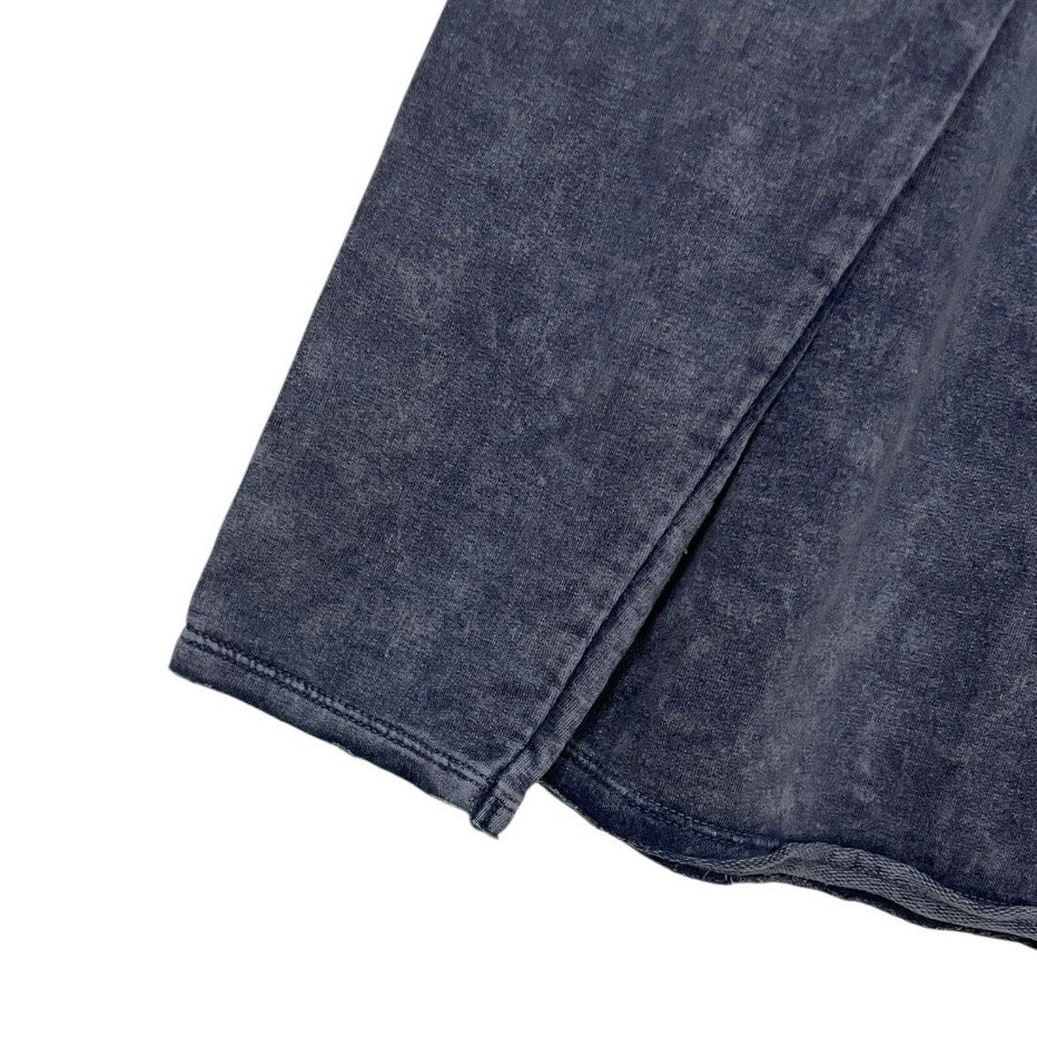 Soft navy blue long sleeve crewneck top with a boho floral embellished neckline