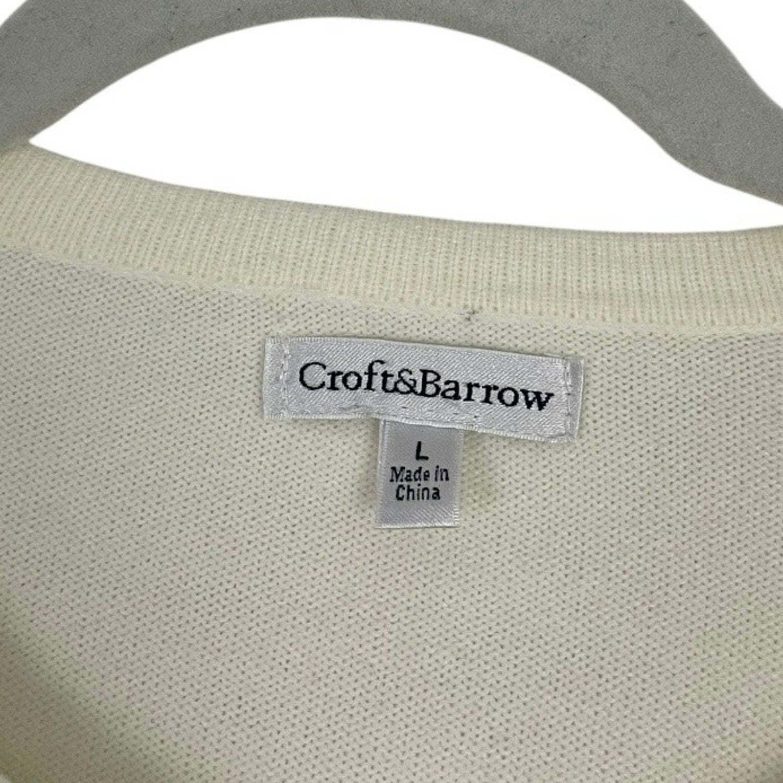Croft & Barrow Cream and Blue Argyle Button Down Sweater