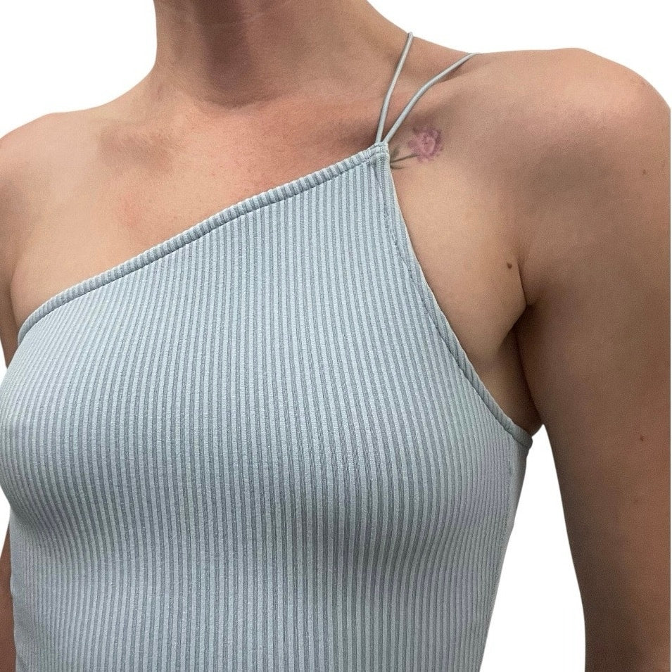 Amazing light blue ribbed one shoulder bodycon mini dress