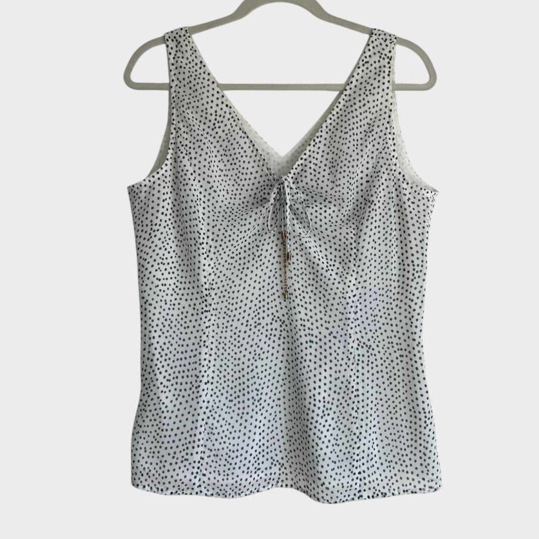 Doncaster White & Black Polka Dot Sheer V-Neck Tank Top Blouse