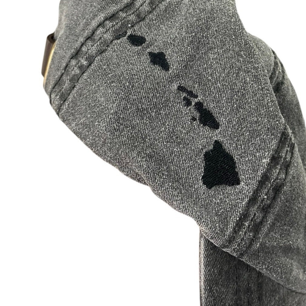 Adorable charcoal washed grey unstructured curved brim cap featuring a sea turtle "Kauai" embroidered patch