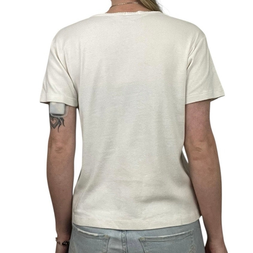 Soft vintage slightly off white/cream short sleeve ruffled trim crewneck blouse
