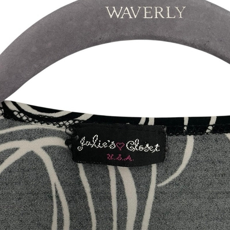 Julie's Closet Vintage Black & White Funky Short Sleeve Tie Back Blouse