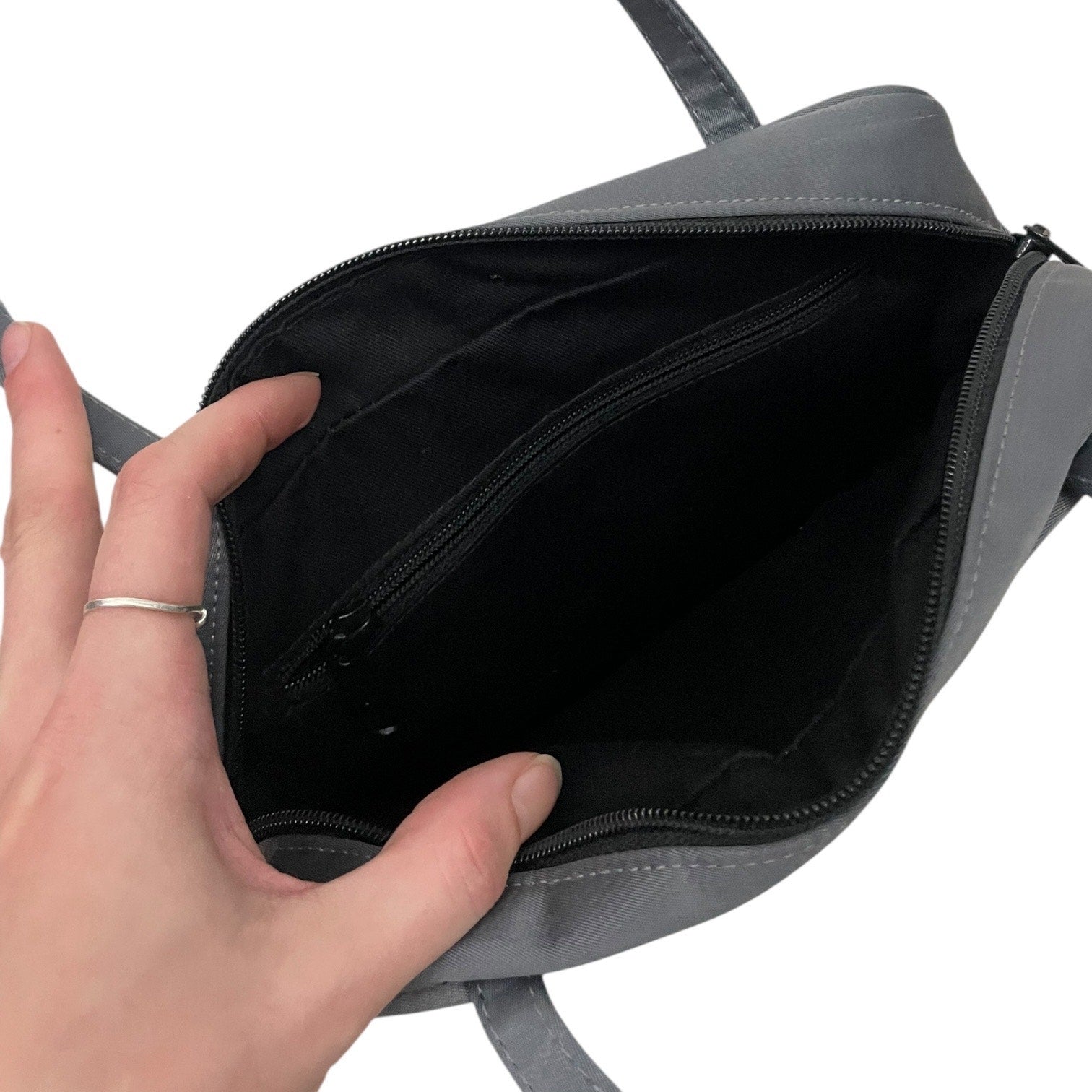 The perfect handbag with a rectangular silhouette and smooth grey finish