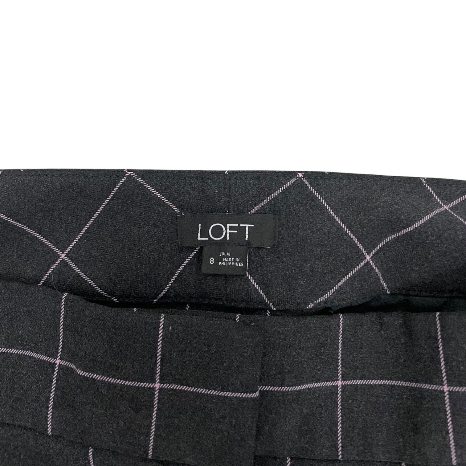 LOFT Julie Dark Grey & Pink Grid Check Plaid Trousers