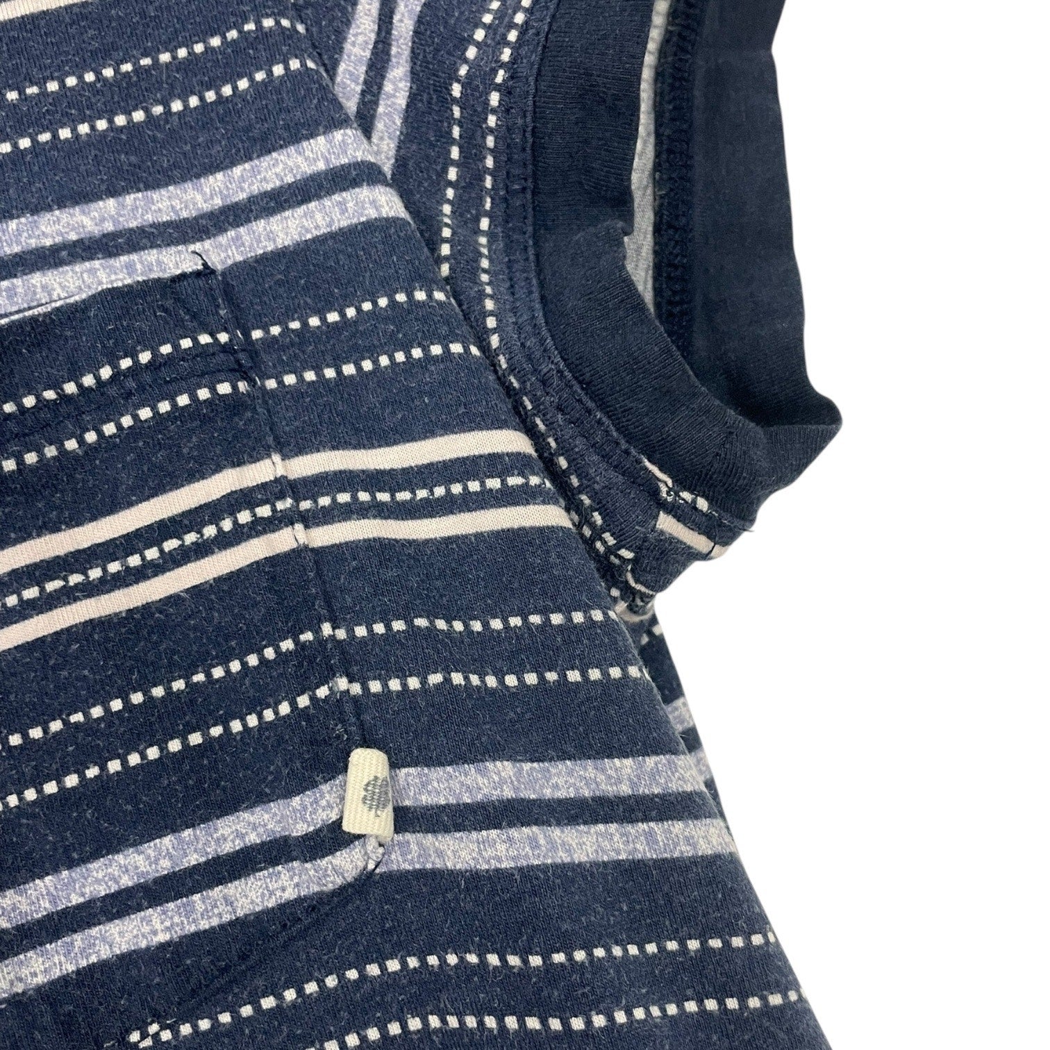 Lucky Brand Navy Blue & White Boho Striped Long Crewneck Top