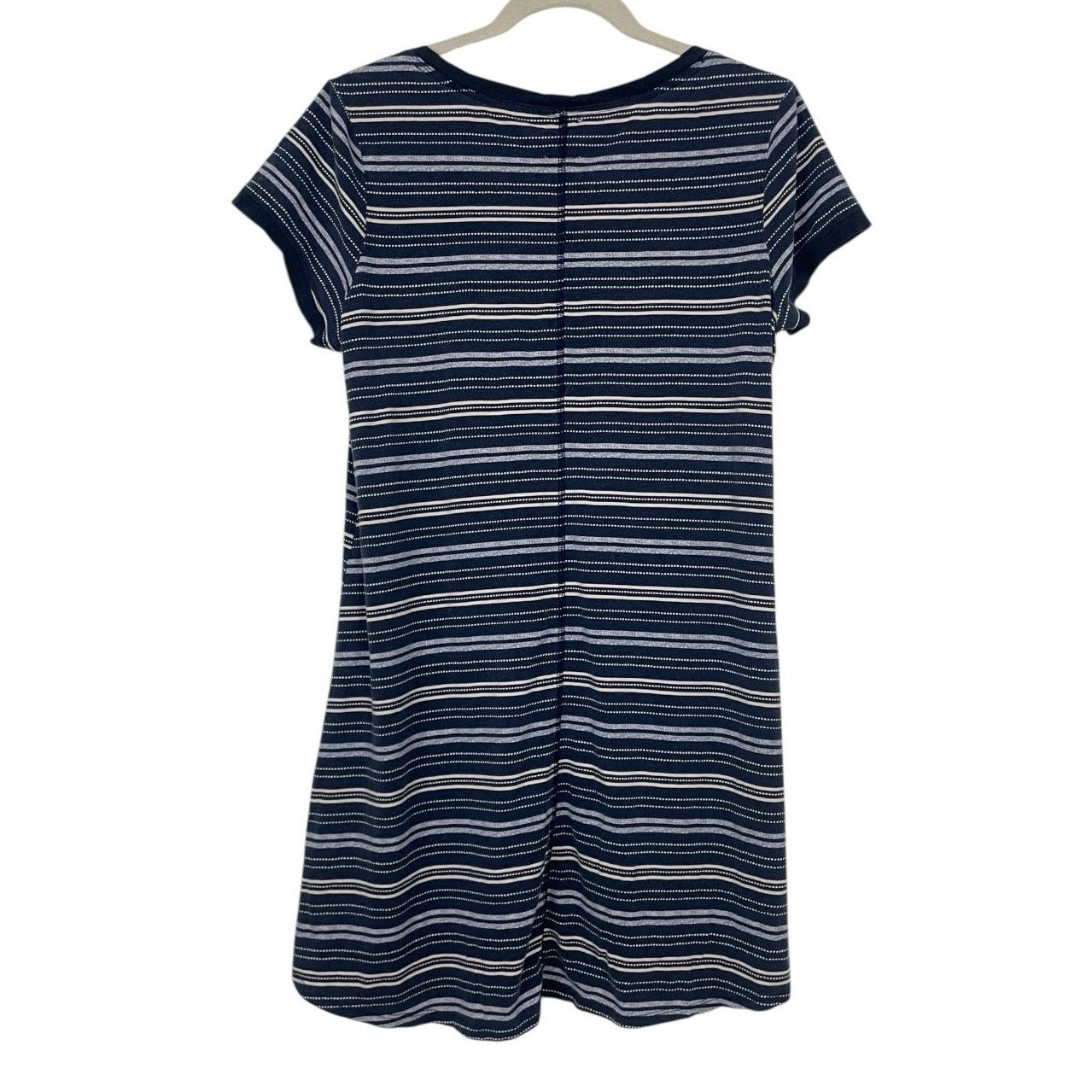 Soft navy blue and white boho striped short sleeve crewneck long top