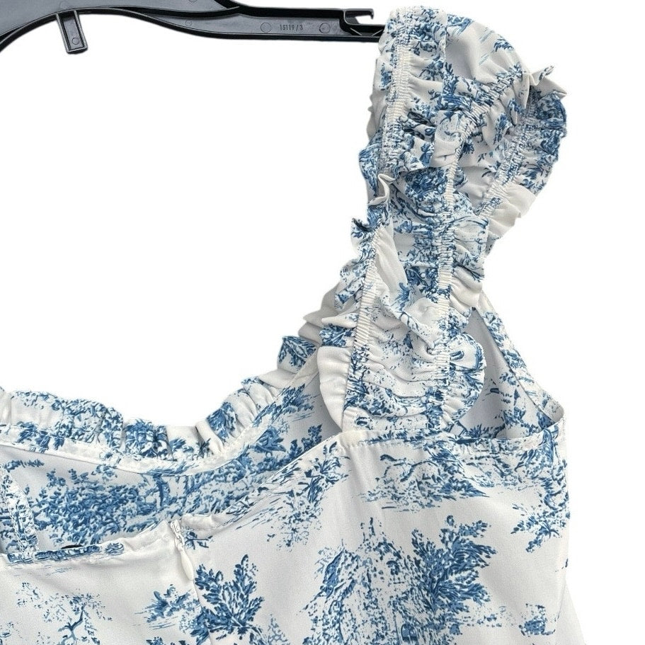NWOT Cider Blue & White Boho Side Slit Ruffled Sleeve A-Line Midi Dress