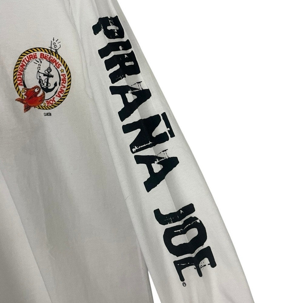 White "Adventure Begins Pirana Joe Cancun Mexico" long sleeve anchor graphic tee