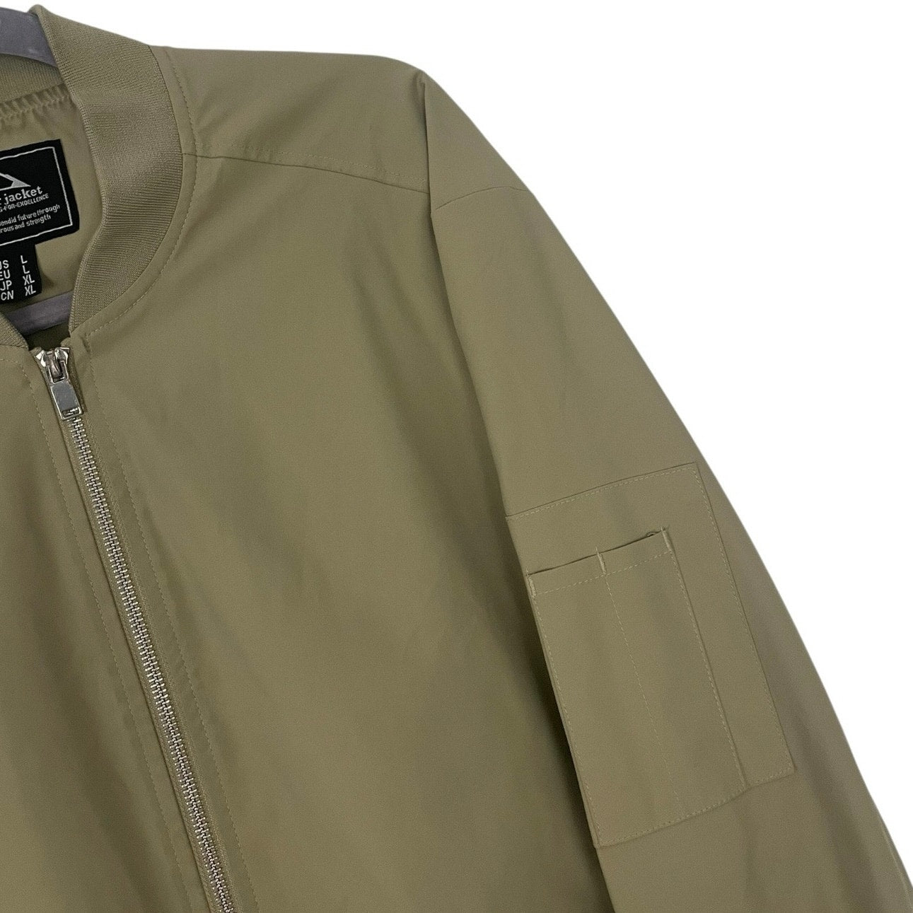 The perfect vintage beige zip up windbreaker jacket with side pockets and a zipper pocket on the arm