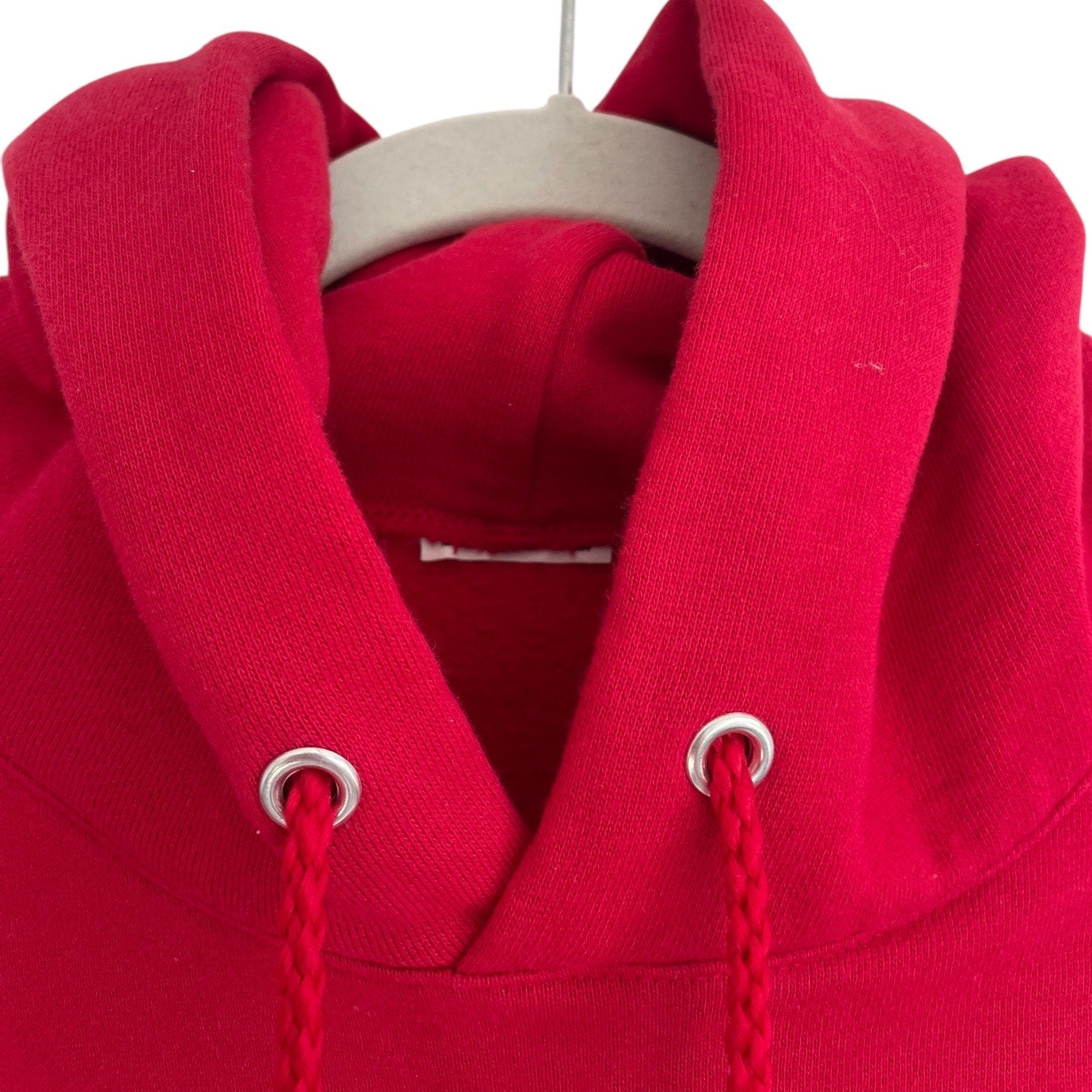 The perfect vibrant red hoodie sweatshirt with a front kangaroo pocket and adjustable drawstring.