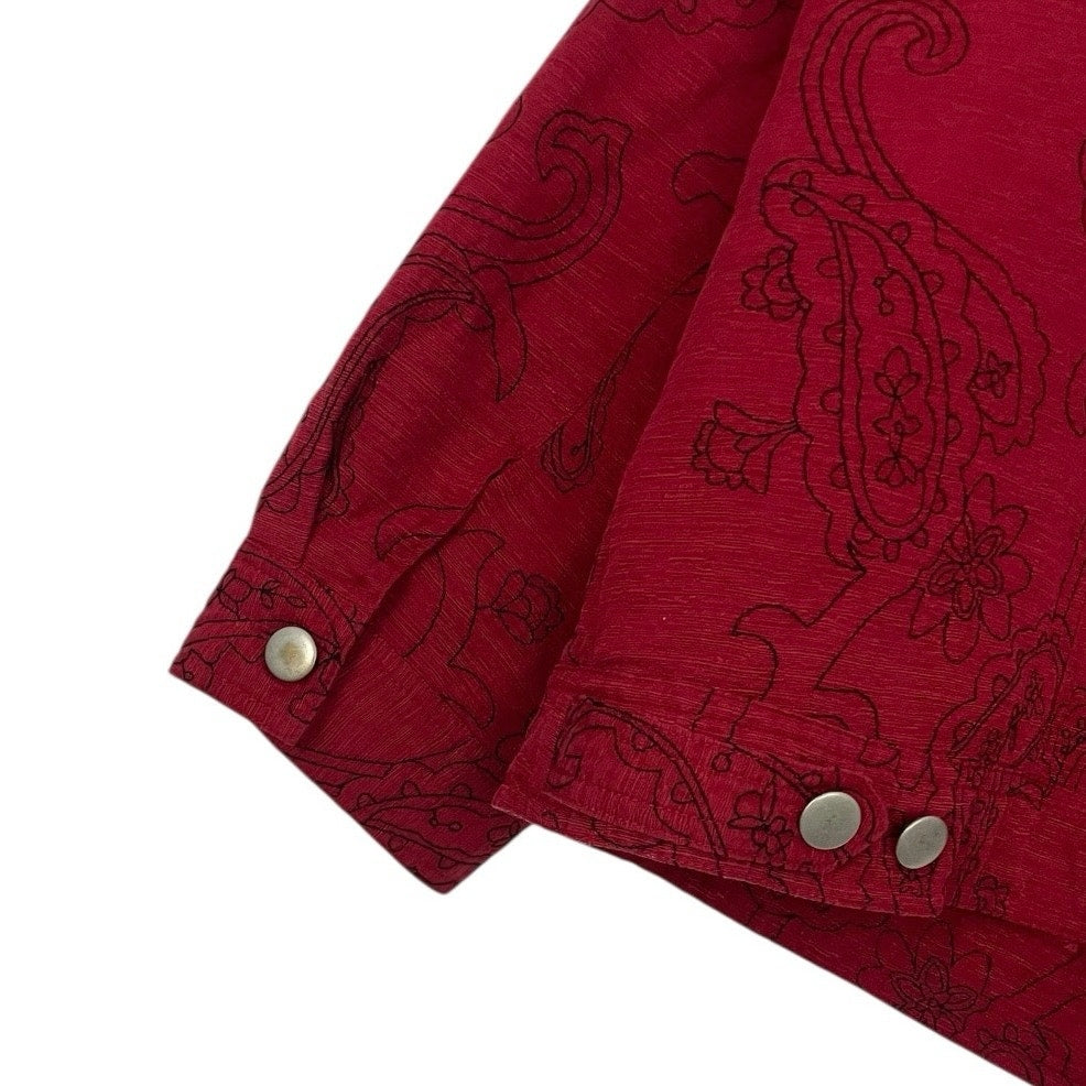 Silk Land Vintage Red & Black Paisley Embroidered Button Down Jacket