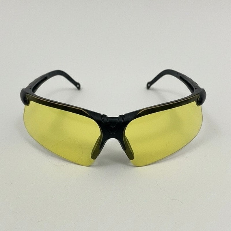Amazing sporty shield wraparound lightweight black frame sunglasses with yellow tinted contrast-enhancing lenses