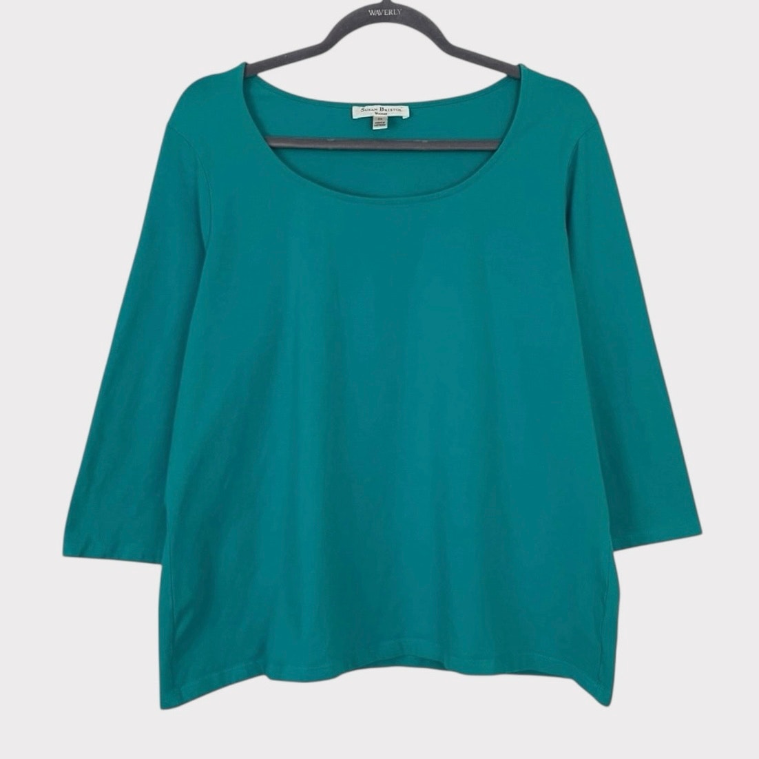 Susan Bristol Blue Crewneck Cropped Sleeve Blouse
