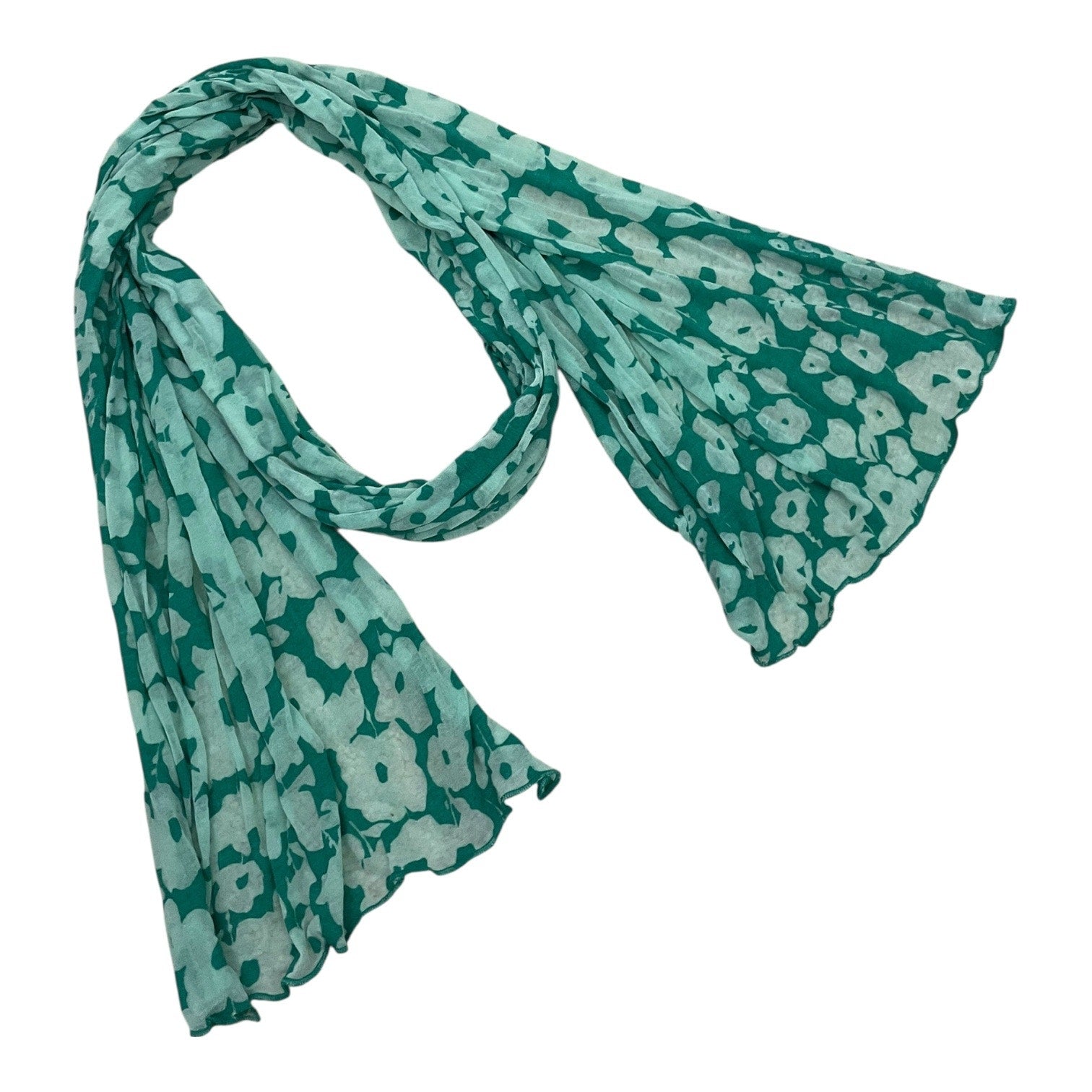 Teal Sheer Floral Print Long Scarf