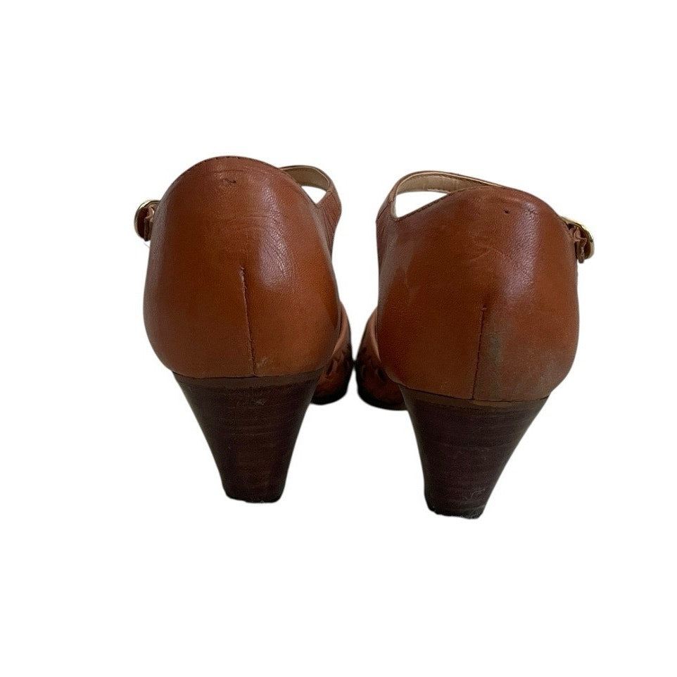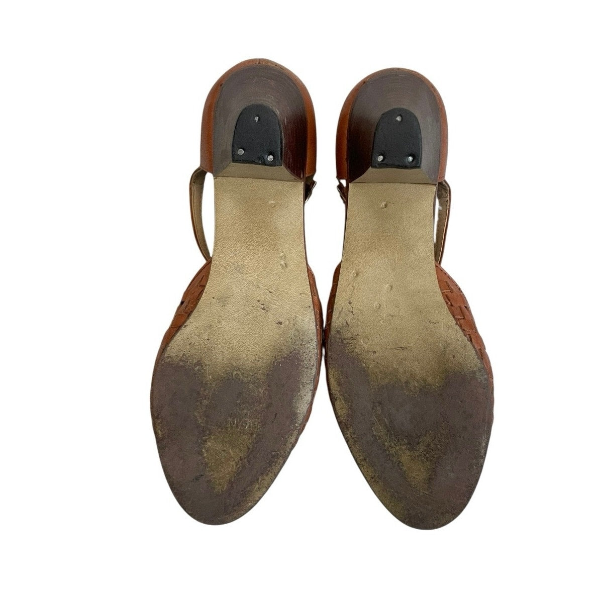 Vintage 70s Jacques Cohen Terracotta Woven Toe Genuine Leather Mid Block Heels