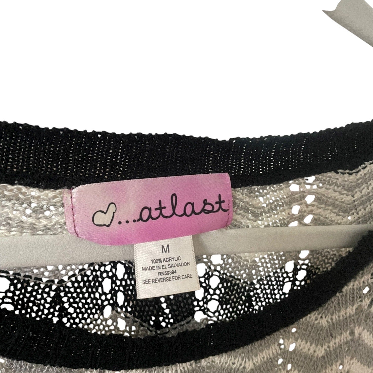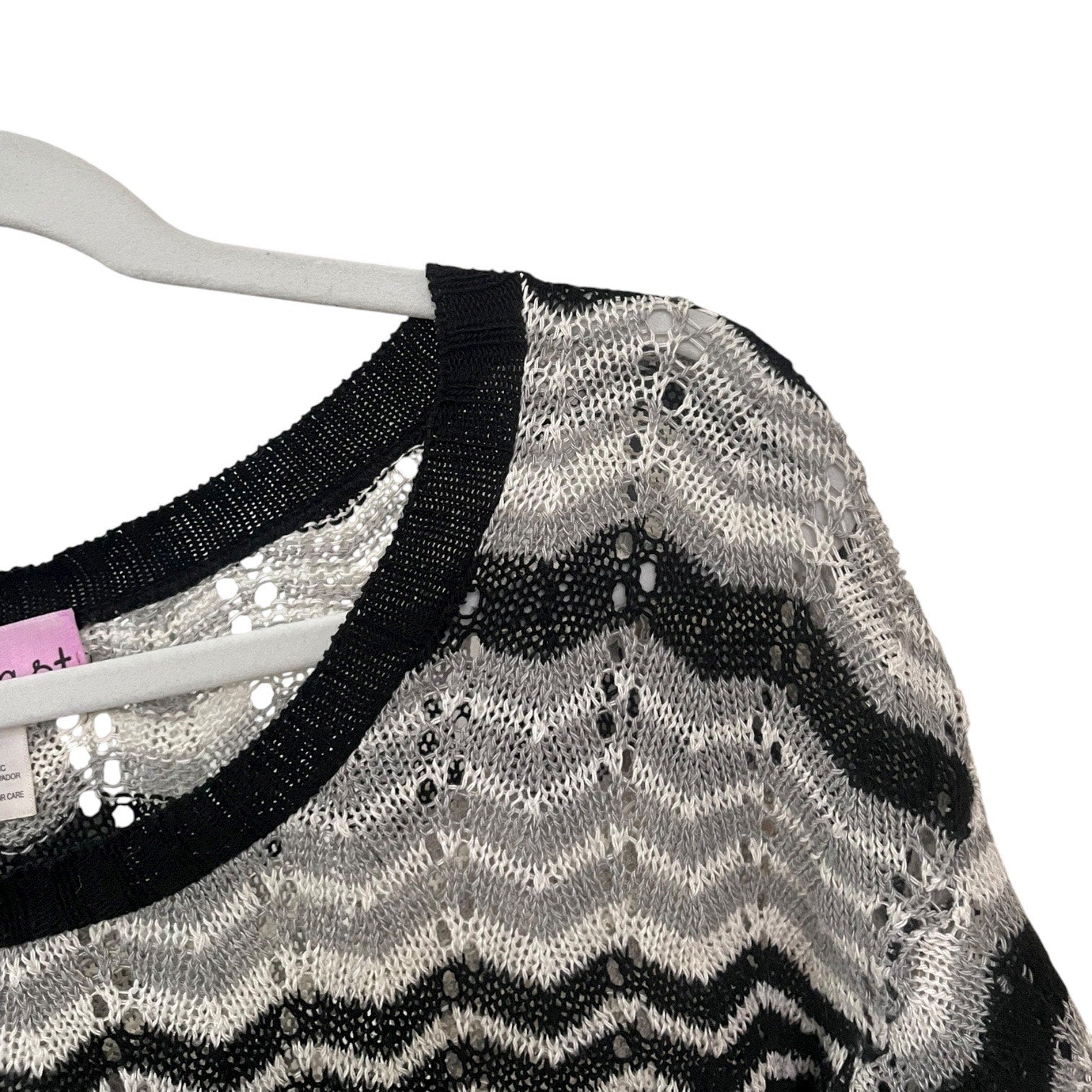 Incredible vintage black, grey, and white zig-zag striped sheer loose knit cropped sleeve blouse
