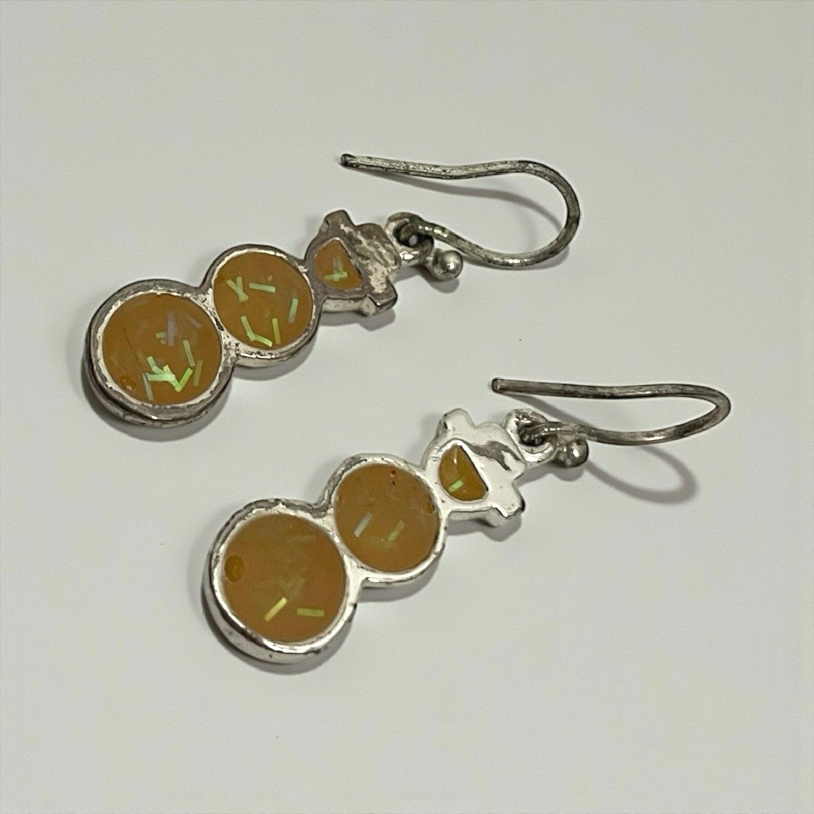 Vintage Snowman Silver & Yellow Glittery Earrings